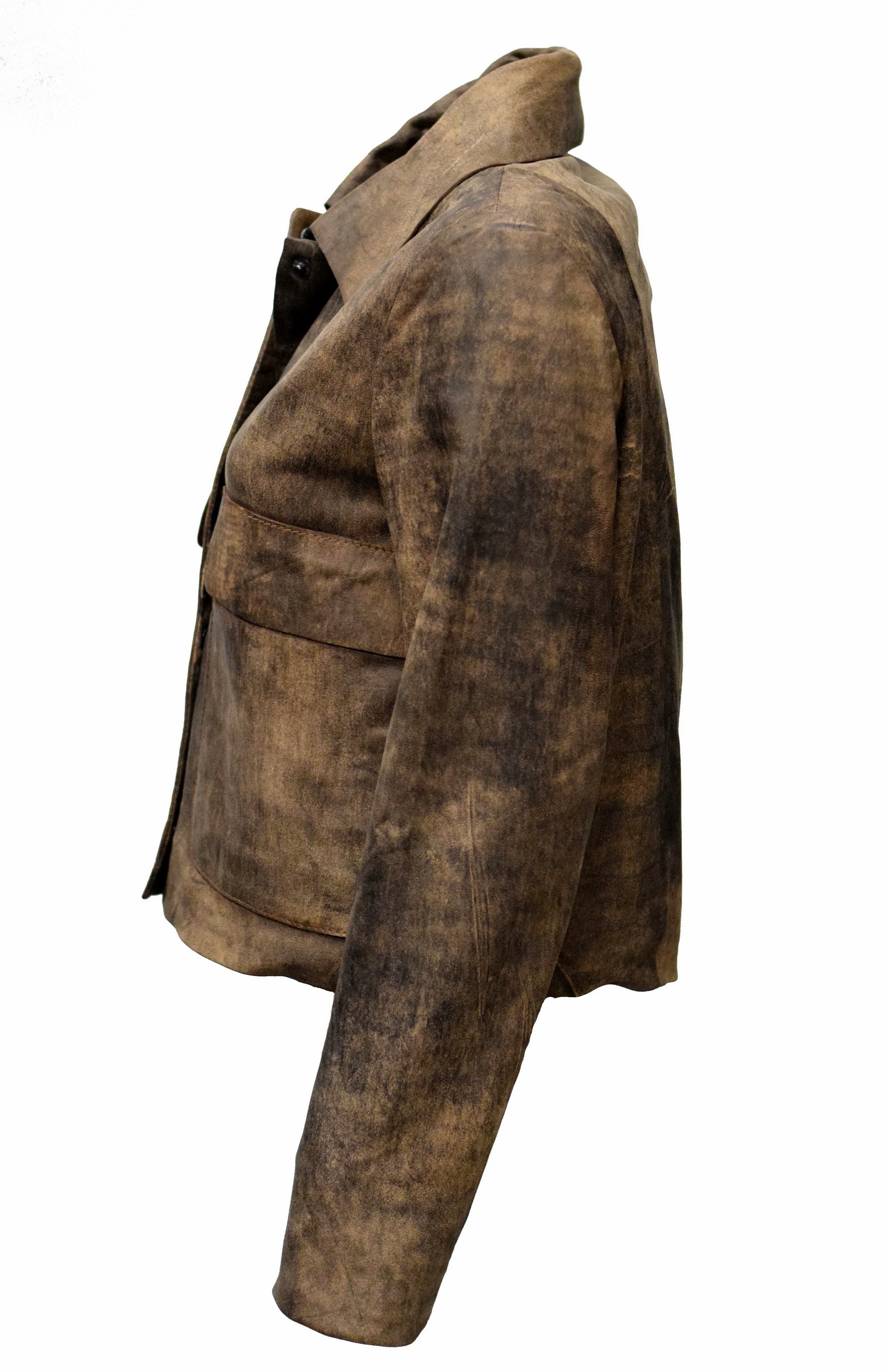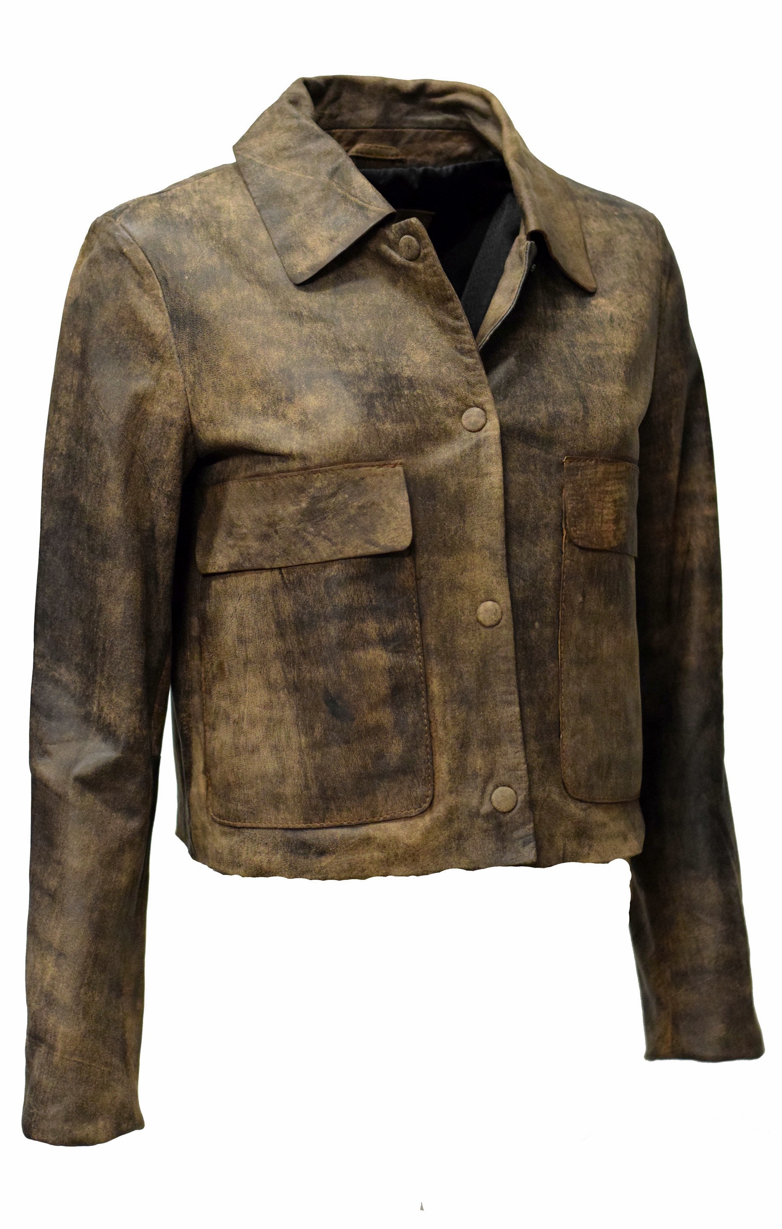 Damen Lederhemd mit aufgesetzten Brusttaschen in vintage Braun. Die Jella ist weich und ganz leicht.