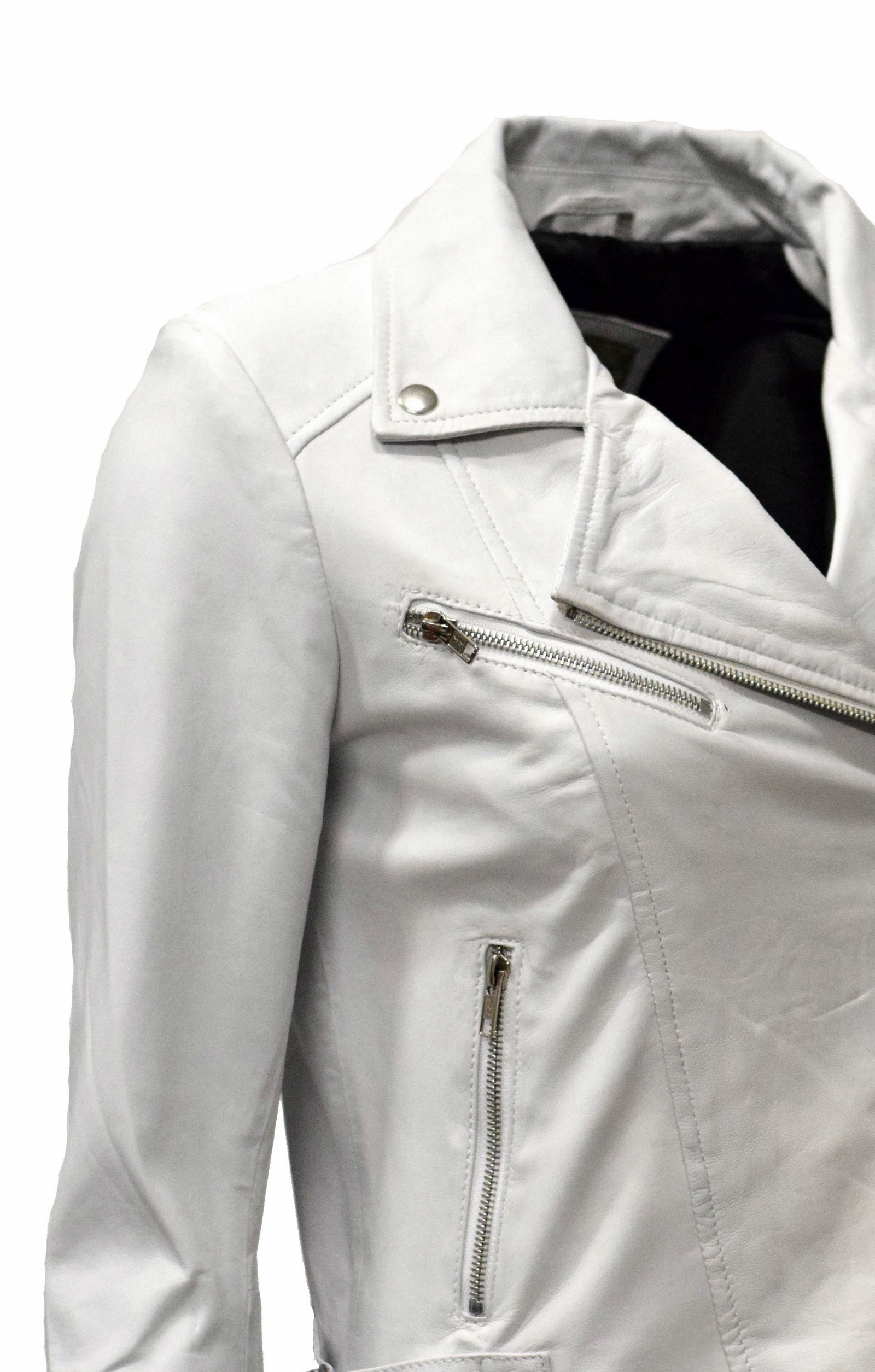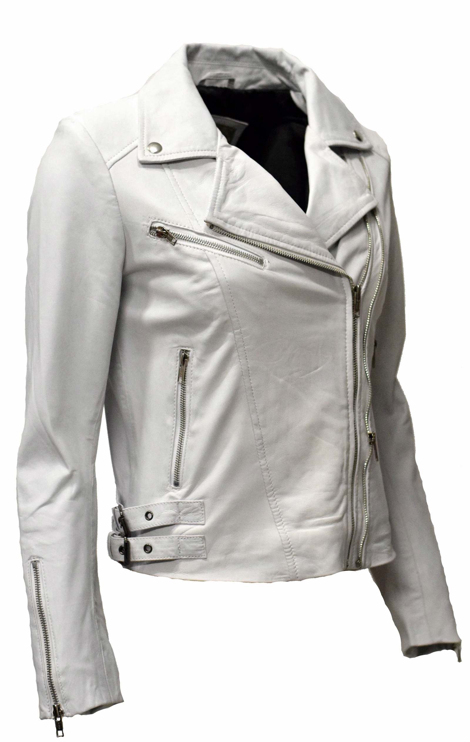 Die dezente Biker Lederjacke Bebie ist aus weichem, knautschigen Lammnappa hergestellt. Durch die zwei schrägen Reißverschlüsse kann die Jacke etwas enger oder weiter getragen werden.