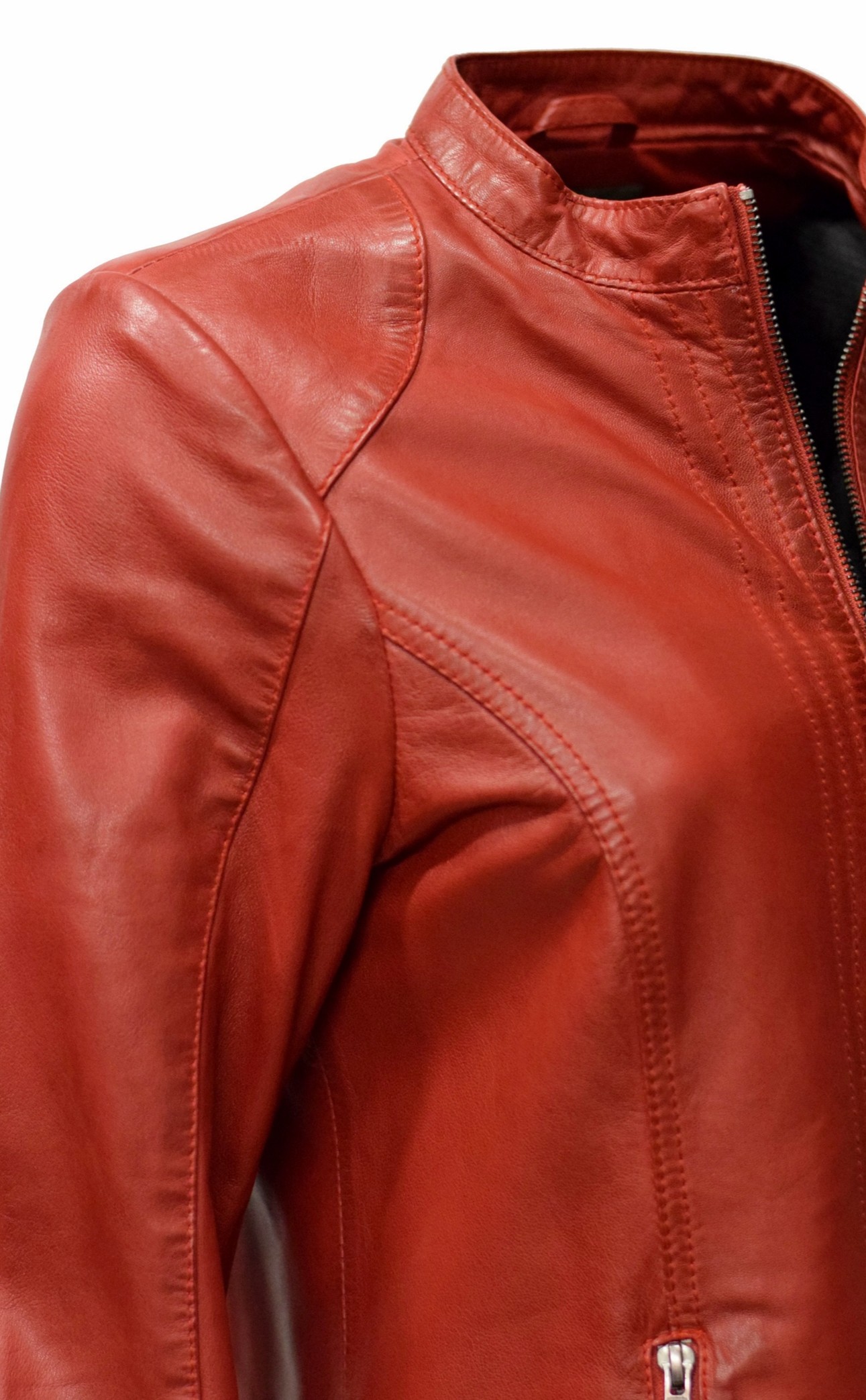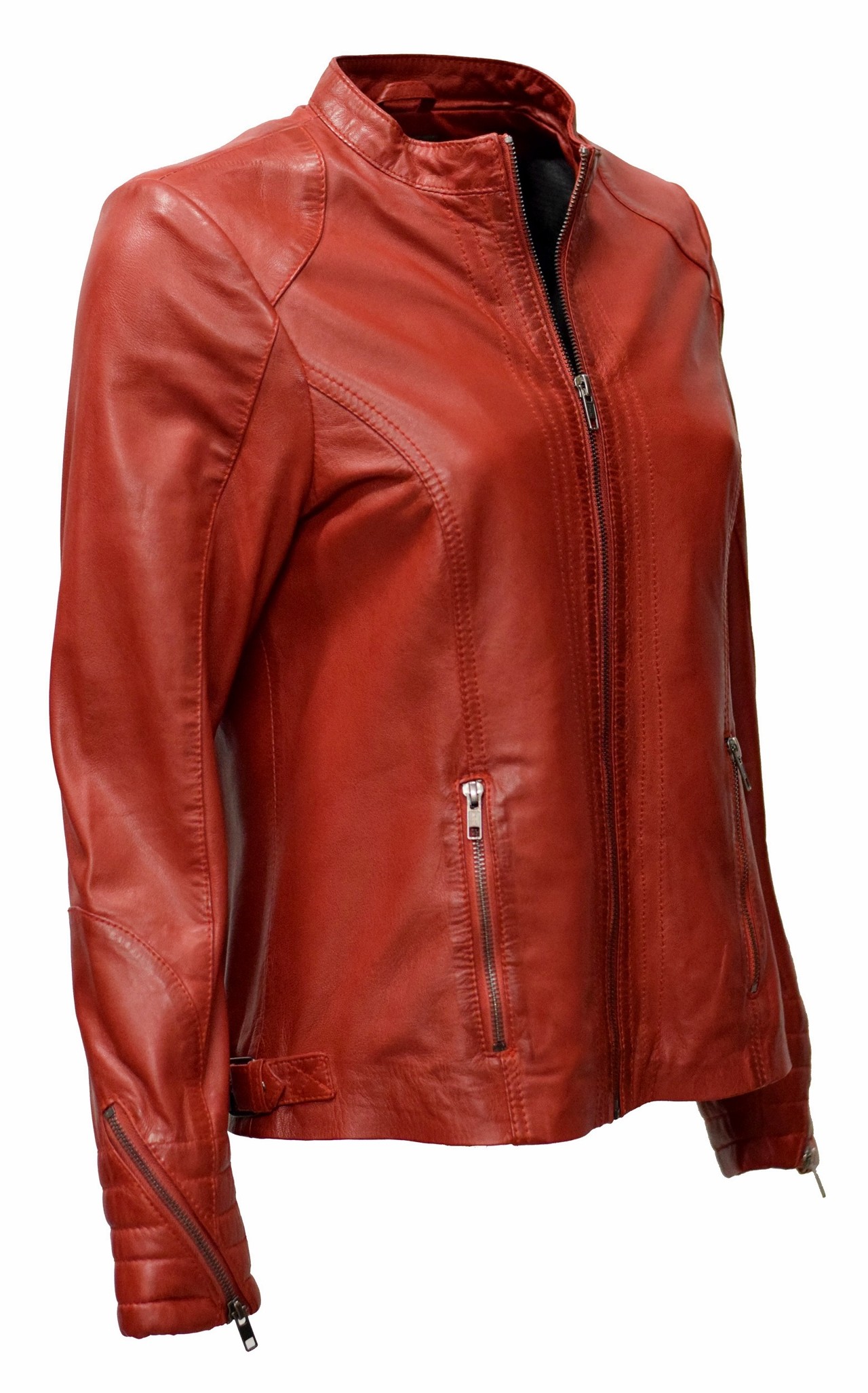 Legere Damen Lederjacke Tina aus weichem Lammnappa Leder in einem schönen Rotton