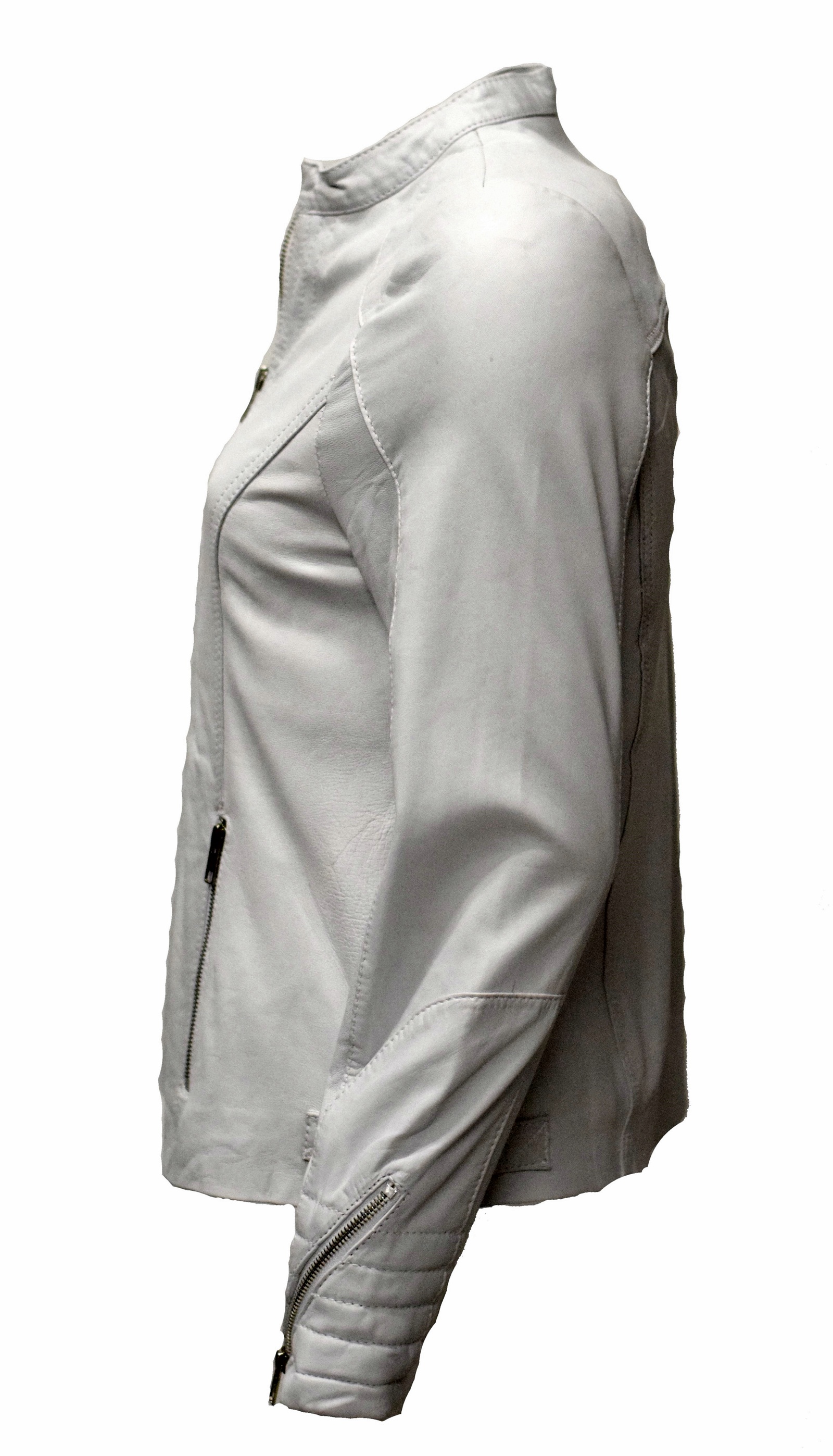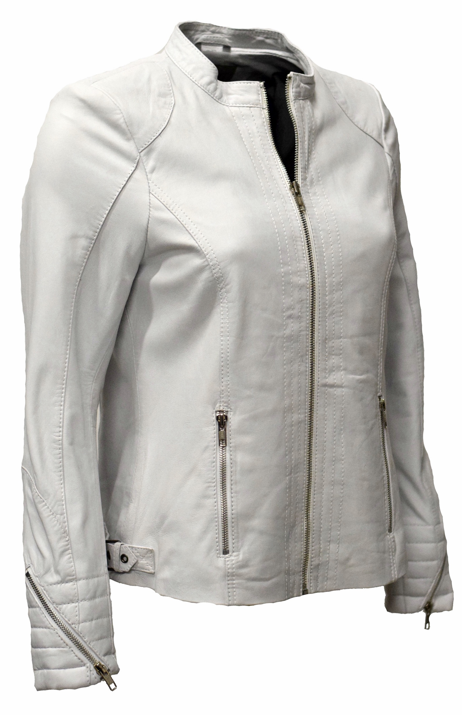 Legere Damen Lederjacke Tina aus weichem Lammnappa Leder in einem washed Weiss.