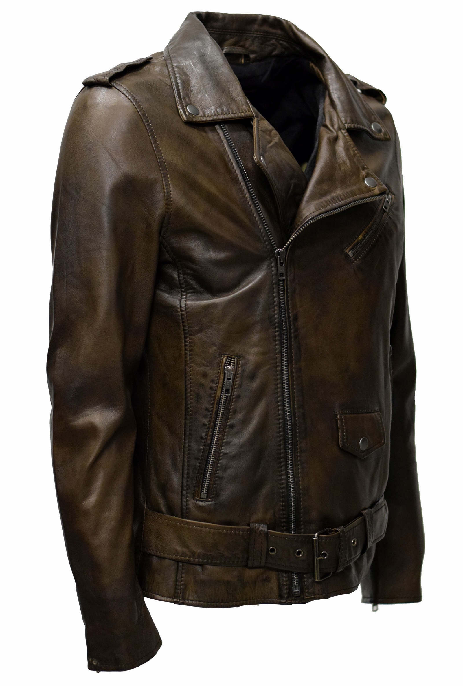 Produktinformationen "Herren Biker Lederjacke Marcel in vintage Moccabraun"