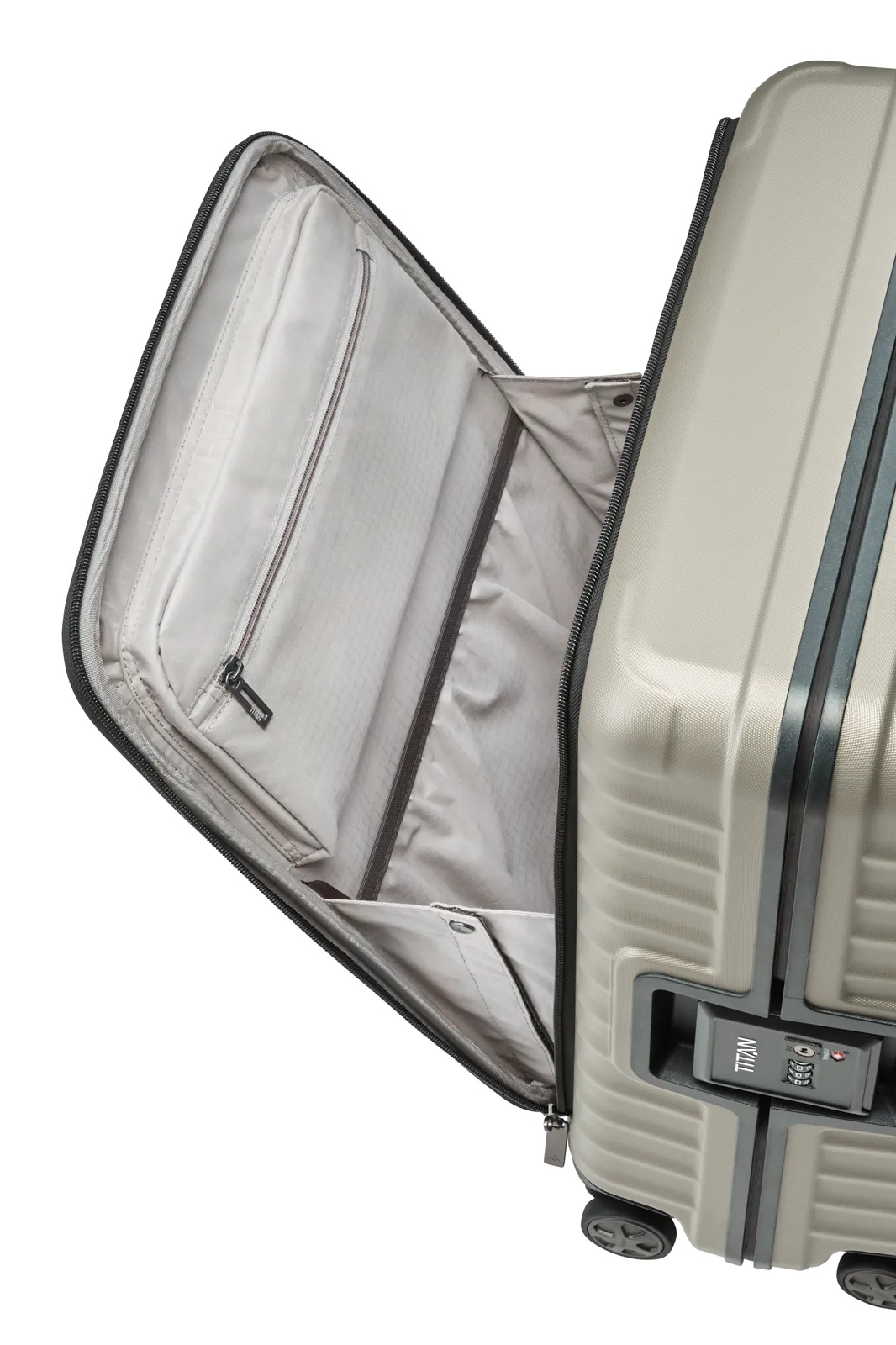 Produktinformationen "TITAN Trolley LITRON FRAME Vortasche S+ 55 cm mit 4 Rollen Champagner"